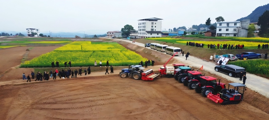 针对丘陵地区耕地零散难题,天府粮仓公司在当地6个村(社区)连片流转土地2000余亩,实现“耕种管收”全程机械化作业。